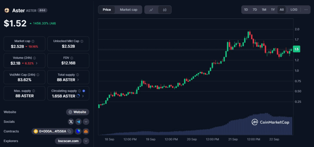 ASTER is a decentralized exchange launched in July 2025 by YZi Labs, a firm with ties to former Binance CEO Changpeng Zhao (CZ). The platform offers: