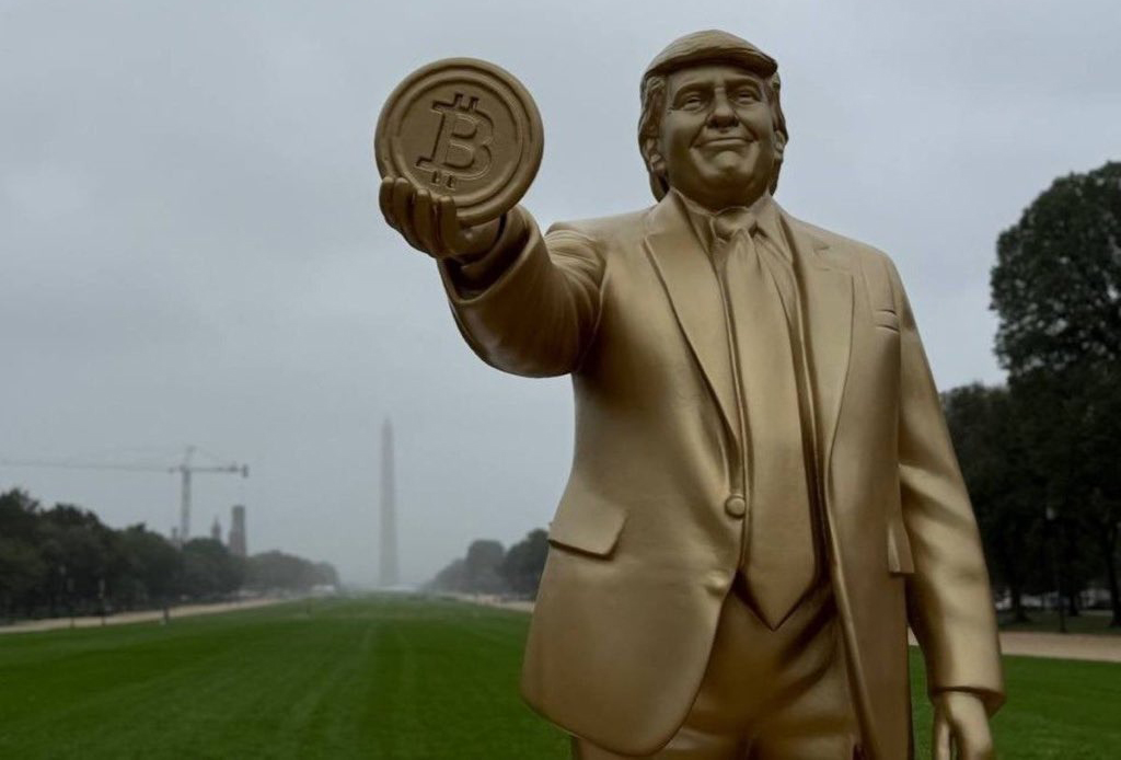But crypto? That’s a different beast entirely. Bitcoin has this weird dual personality. It acts like a tech stock when risk is on, but increasingly like digital gold when things get sketchy. With a golden Trump statue holding Bitcoin now sitting outside the Capitol, the political winds are clearly shifting toward crypto-friendly policies.