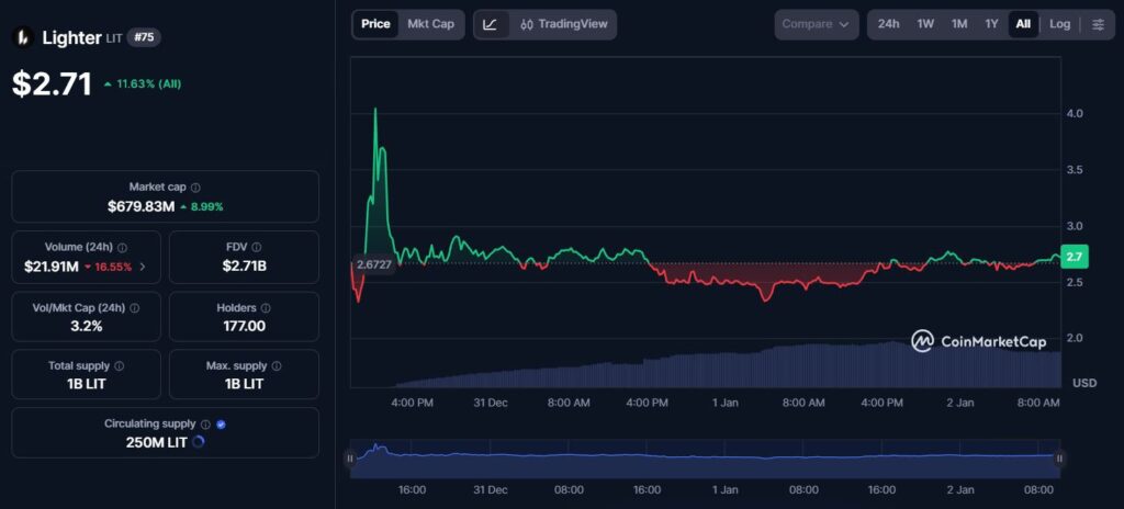Lighter’s progress is especially notable given its relatively recent launch and its aggressive zero-fee model, which is designed to attract professional market makers and high-frequency traders.