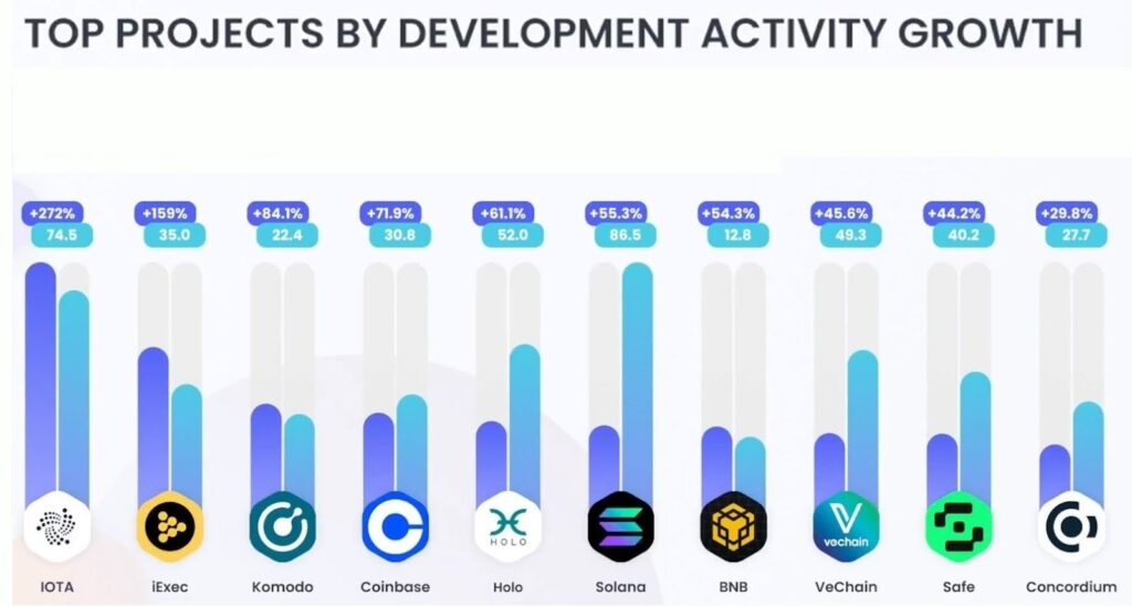 Even as market fear spreads, blockchain development continues to rise. According to Chain Broker, top projects showing growth in developer activity include