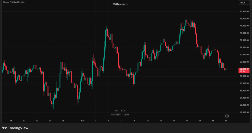 Crypto reacted fast to the geopolitical shock. Bitcoin fell toward and then below $68,000 after Trump’s warning, showing that even though BTC often trades as an independent asset, it still behaves like a risk asset when global fear rises quickly. The drop was not happening in isolation either. It came during a broader market move where futures weakened and traders began preparing for a very unstable start to the week.