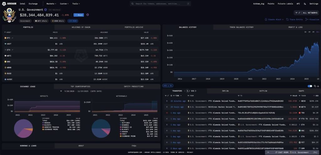 The weekend also brought fresh on-chain moves from the US government. In the last 24 hours, wallets linked to US authorities moved about: