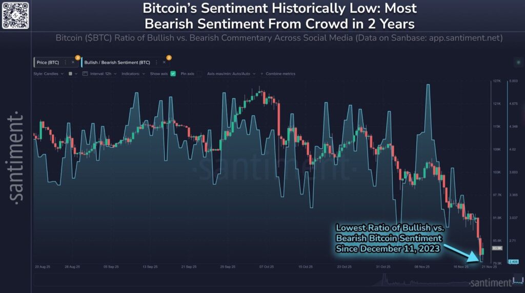 At the same time, data from @santimentfeed shows that market sentiment toward BTC is at its lowest level since 11 December 2023. That means a lot of fear, anger, and exhaustion. Historically, such deep negative sentiment has often appeared near large reversal points, but it can also stay low for a while if macro conditions remain bad.