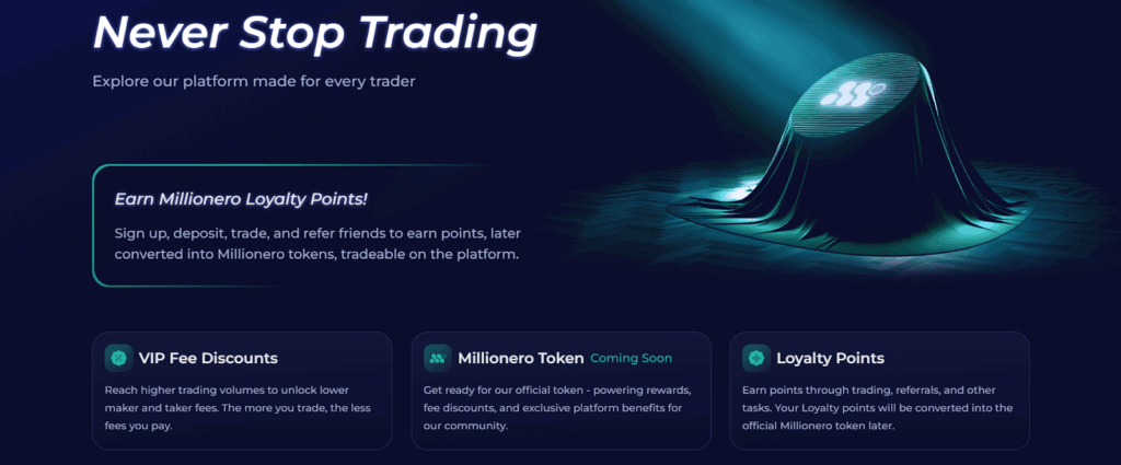 - Spot Fees: On Millionero, spot trades cost as low as 0.07% for makers and 0.075% for takers. That’s all you pay per trade, no ongoing fees. (If you withdraw crypto, you pay the usual network fee to move it out.)