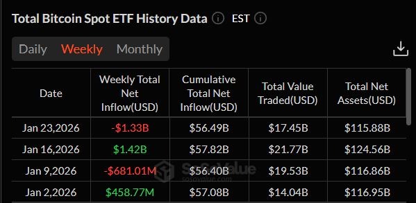 Across the week, Bitcoin ETF flow was -$1.33B, and Ethereum ETF flow was -$611M. Over a shorter window inside the week, the last 3 days alone saw about $1.58B leave Bitcoin ETFs, with big names like BlackRock and Fidelity leading the outflows. The message was simple: institutions did not want maximum exposure while headlines and rates were both unstable.