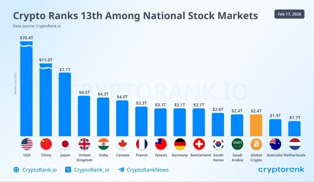 First, a sense of scale: if crypto were its own independent stock market, it would rank roughly 13th in the world by size. That’s big enough to matter and attract serious capital, but small enough to get moved around significantly by liquidity waves, which is exactly what we’re seeing right now.