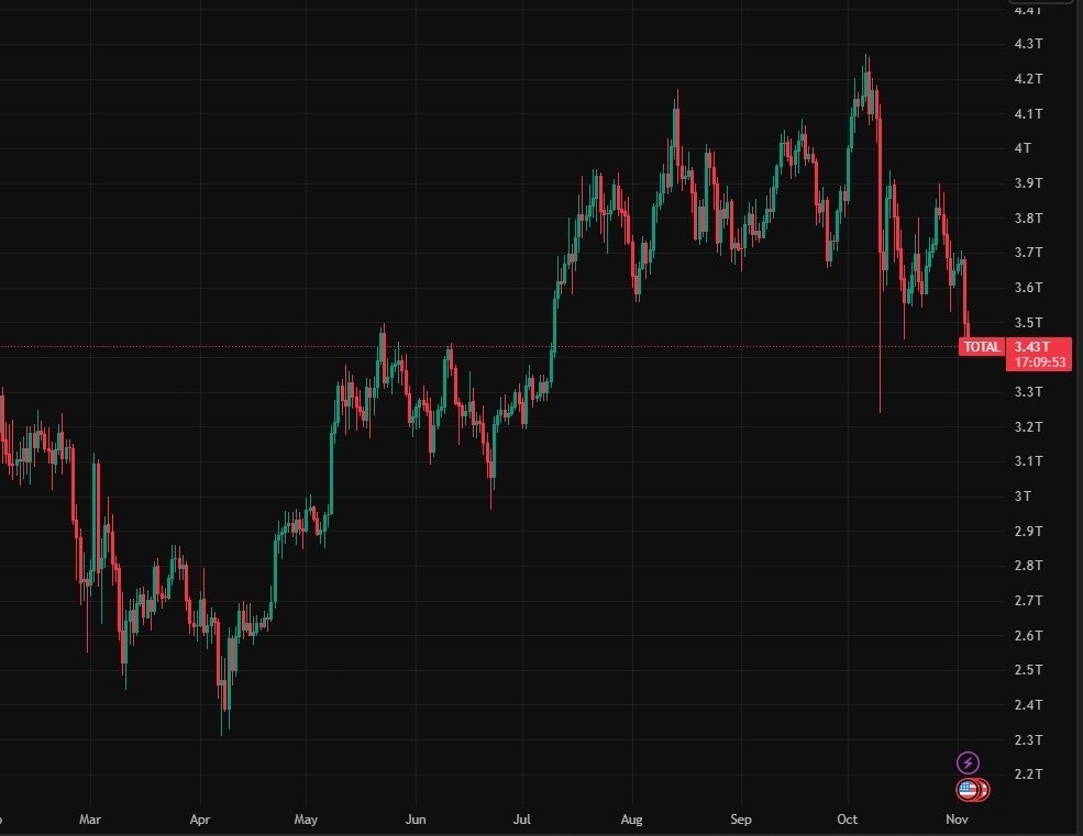 - The crypto market has lost around $790 billion–$1 trillion in value since early October