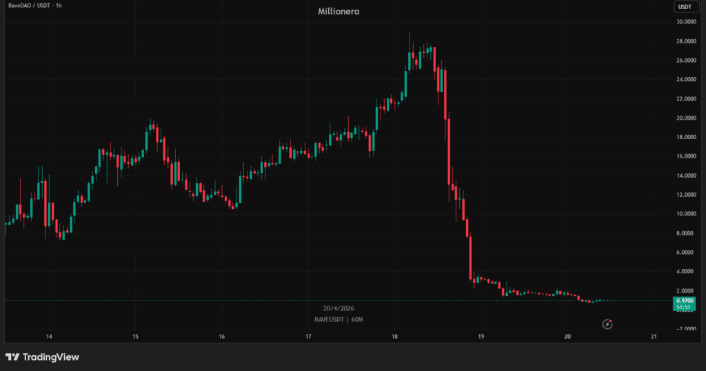 The market reacted immediately. $RAVE dropped another 40% in minutes, falling from about $1.53 to $0.72.