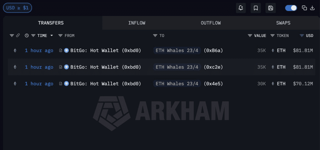 There was also a major Ethereum accumulation report. Three large addresses bought 100,000 ETH for $234 million. The withdrawal was made through BitGo, and the movement raised the question of whether Tom Lee was behind the purchases. That link was not confirmed in the material, but the size of the move made it notable.