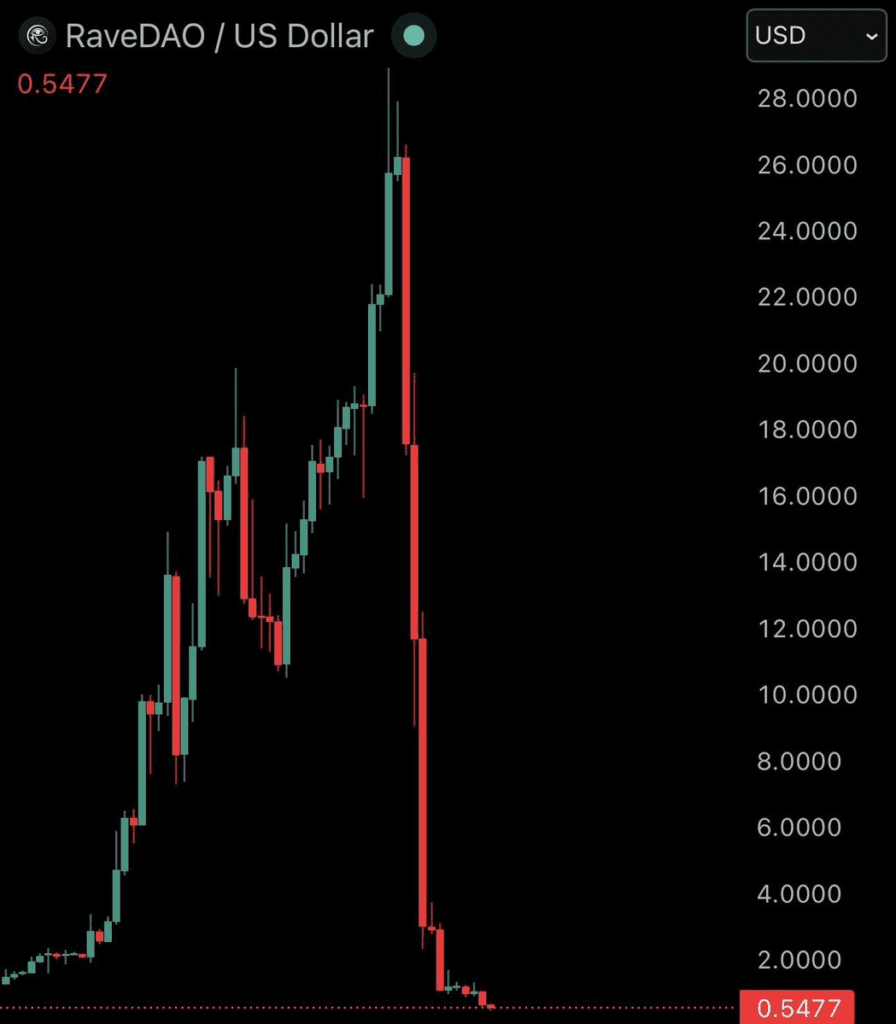 The sharp collapse of RAVE became one of the most alarming market events of the week. The token dropped by more than 95% in 24 hours, falling from $26 to $1, with billions wiped from market cap.
