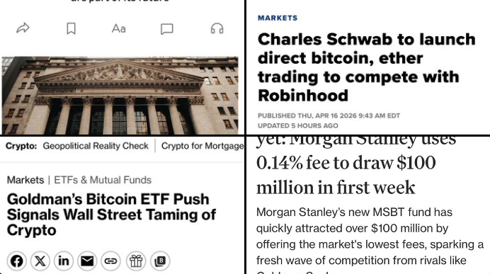 At the same time, a broader market summary said the digital “Wall Street” era had officially begun. It highlighted four points: Goldman Sachs launched its first Bitcoin-linked ETF fund to boost returns, Morgan Stanley’s Bitcoin fund became the most successful ETF launch in the bank’s history, Charles Schwab officially began offering direct cryptocurrency trading to its clients, and the NYSE adopted crypto technologies and moved toward tokenized asset trading.