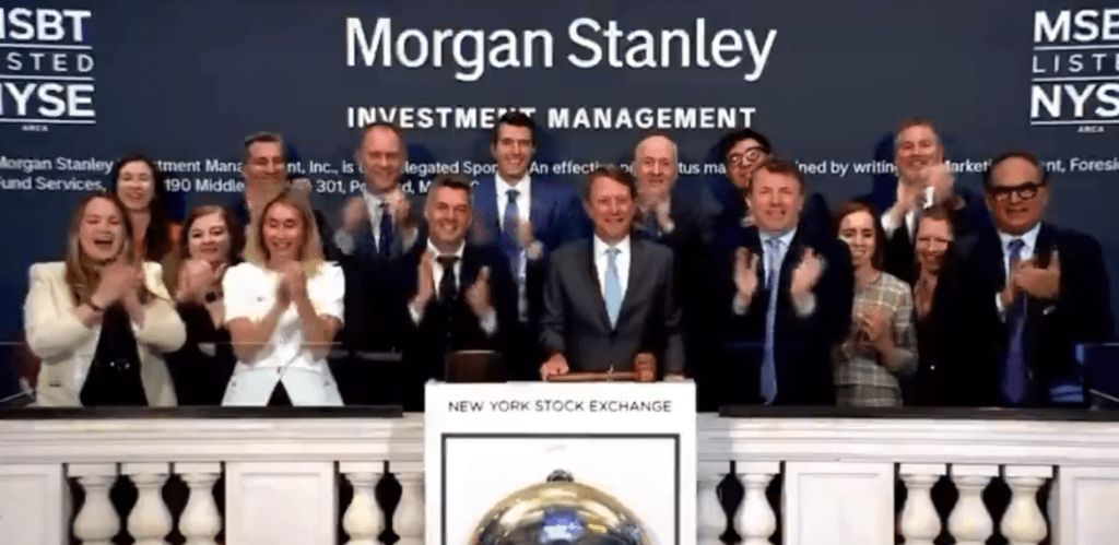 Morgan Stanley rang the NYSE Closing Bell to celebrate the launch of $MSBT, described as the first spot Bitcoin ETF issued by a major US bank.