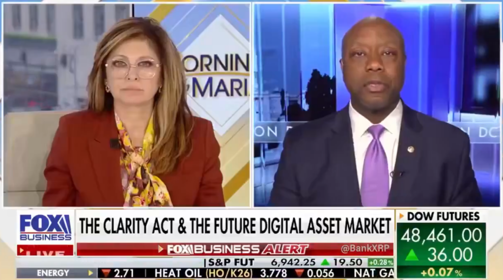 That theme was reinforced when Tim Scott said most of the key points in the CLARITY Act had nearly been resolved. That raised the prospect of a breakthrough within two weeks, a move seen as a possible near-term catalyst for both crypto and Bitcoin.