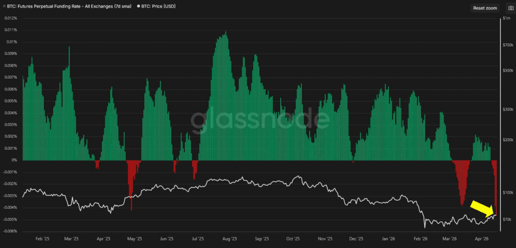 At the same time, positioning data suggested that the market could still move violently. Glassnode data showed a strong concentration of short selling deals on Bitcoin, while funding rates hit their lowest level in three years. Historically, these deeply negative levels have preceded sharp price breakouts, raising the possibility of a strong short squeeze.