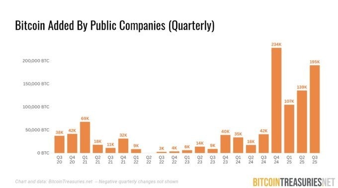 New data shows companies bought 441,000 BTC in the first nine months of the year, showing continued interest despite volatility.