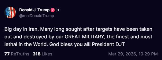Another unusual development came from Iran’s Speaker of Parliament, who gave direct trading advice to investors in US markets. His message was that pre-market so-called “news” or “Truth” is often just a setup for profit-taking and should be treated as a reverse indicator. The advice was simple: if they pump it, short it; if they dump it, go long. That stood out because the conflict is now producing not only military and commodity headlines, but also direct public attempts to shape trader behavior.