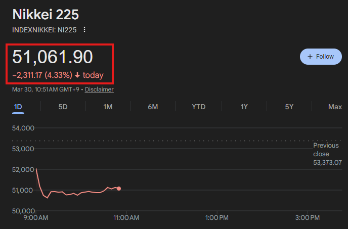 Japan’s stock market then fell nearly -5%, another sign that the rise in energy stress was not staying isolated to commodities. It was moving directly into equities and broader regional risk pricing.
