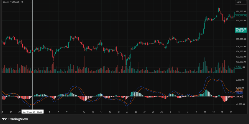 If you’ve ever seen two lines dancing below Bitcoin’s chart and wondered what they mean, that’s probably the MACD, short for Moving Average Convergence Divergence.