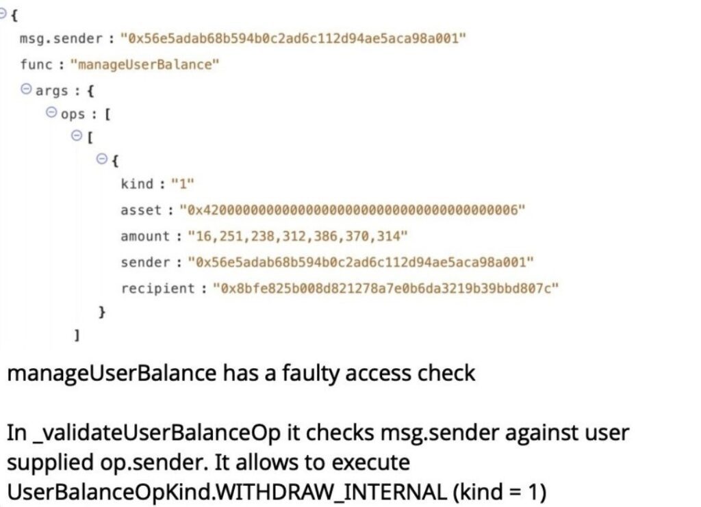 At the heart of the chaos was a flaw in Balancer V2’s Vault, the shared engine powering all its pools. Security firm Decurity pointed to a faulty permission system in manageUserBalance, which allowed attackers to withdraw funds that weren’t theirs.