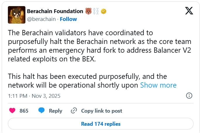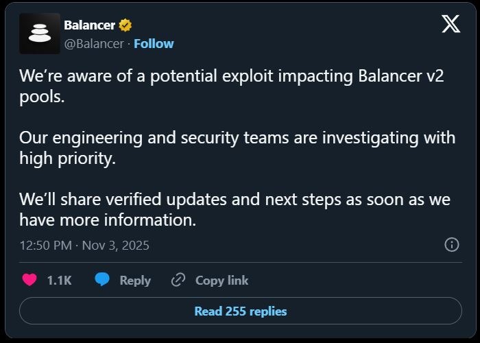 By midday, Balancer’s official X (Twitter) account confirmed: