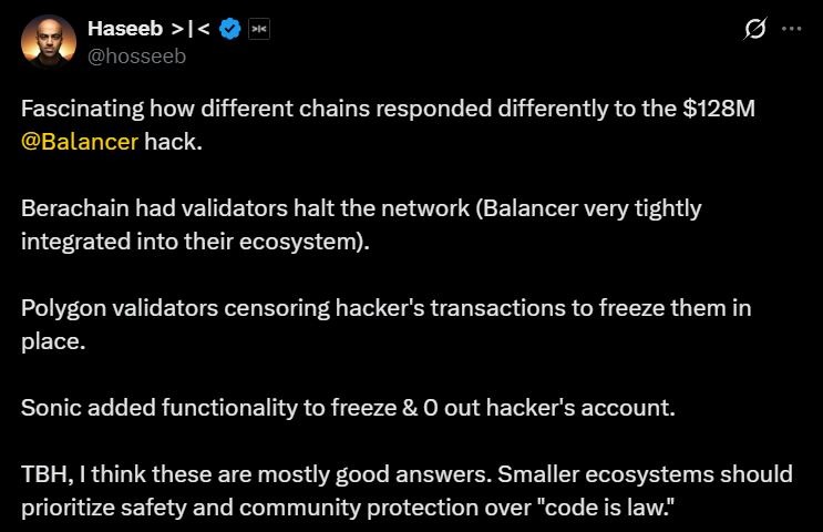 On Arbitrum, Polygon, Base, and Optimism, developers coordinated to limit contagion. Beefy Finance froze all Balancer-based products, while Sonic Labs on Fantom even changed token logic to freeze stolen funds.